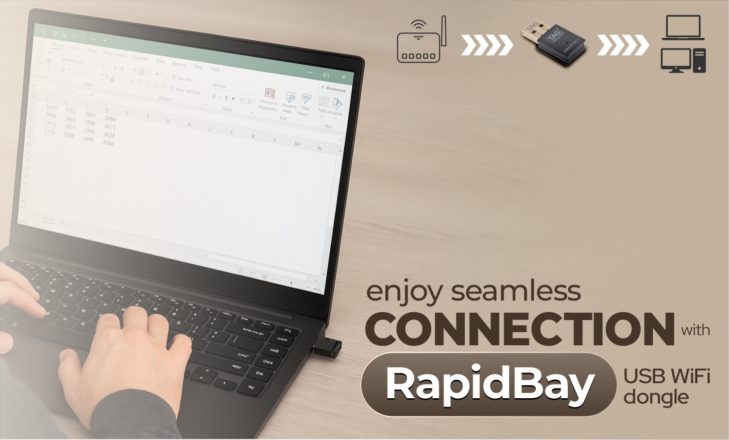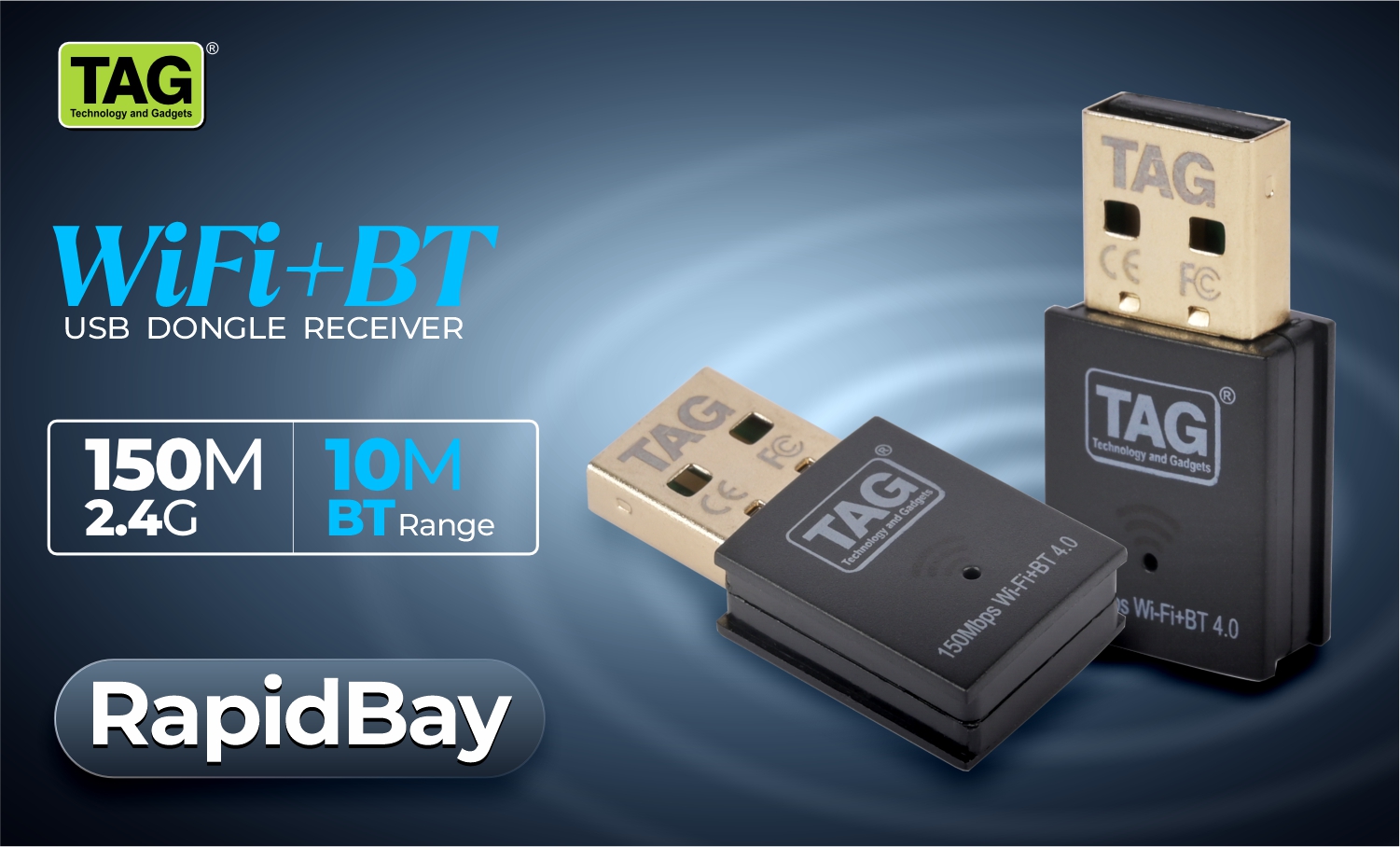 TAG Rapidbay WiFi & Bluetooth 4.2 USB Adapter | 150Mbps 2.4GHz Wireless Dongle | Plug & Play for PC/Laptop/Desktop | Windows 11/10/8.1/7 | Nano Design | Secure Connection