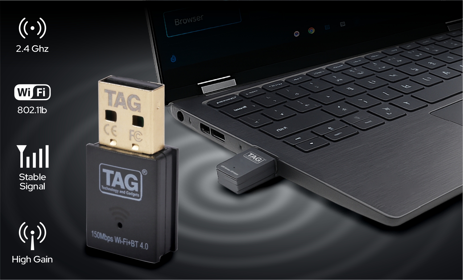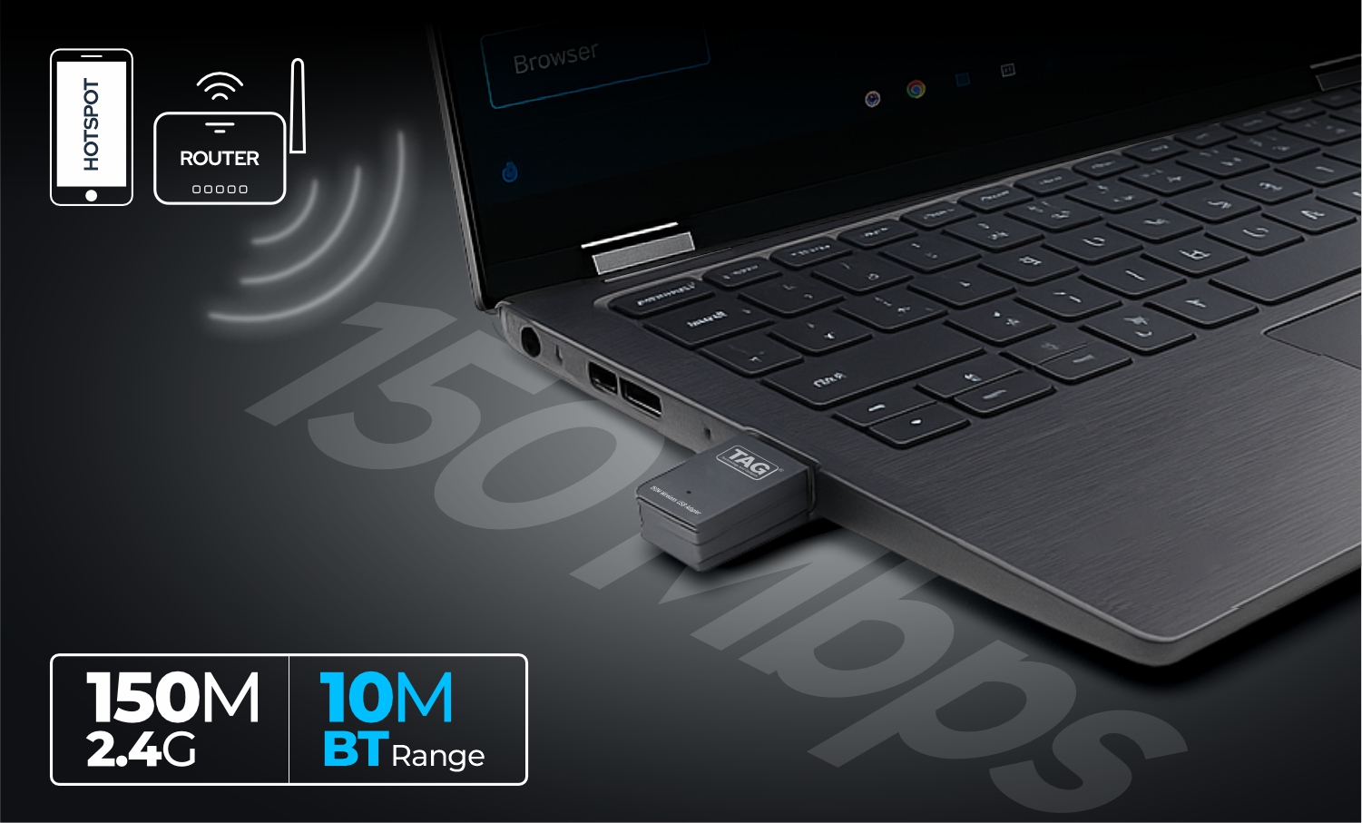 • TAG Rapidbay High-Speed WiFi – Enjoy wireless speeds up to 150Mbps on 2.4GHz and Bluetooth 4.2, perfect for HD streaming, gaming, and smooth browsing.